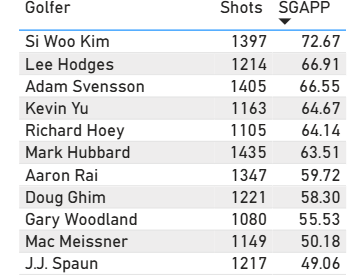 That's why the key stats here are all connected: apex height, ball speed, club head speed, and driving distance are 1-2-3-4 in terms of correlation to success at the South Course.