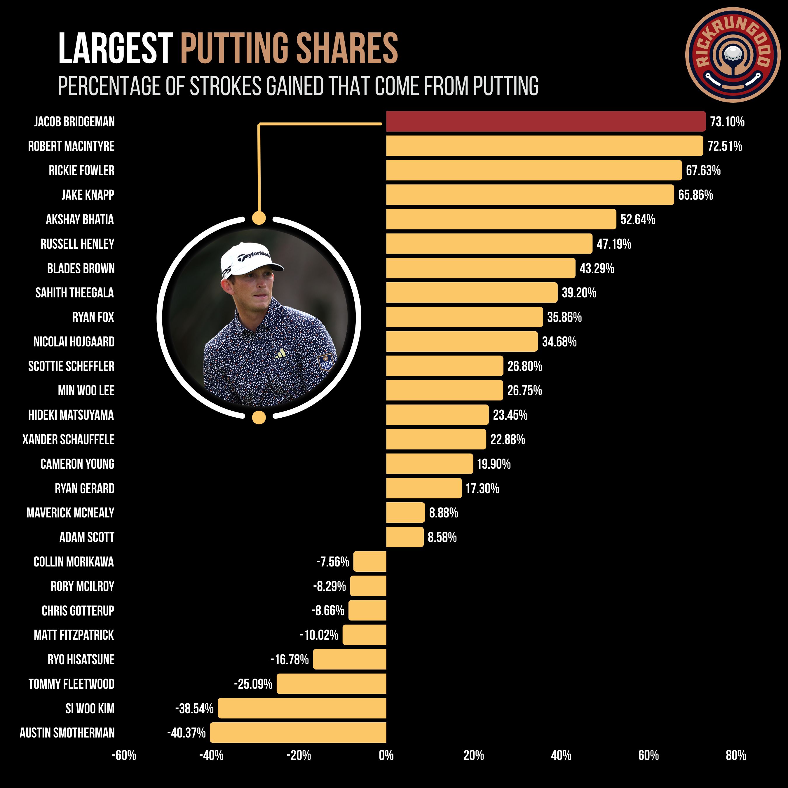 He does gain 73% of his strokes through the putter which offers up some level of concern but itās not like those gains have come out of nowhere. Heās always been a great putter and he passes the eye test in a big way.